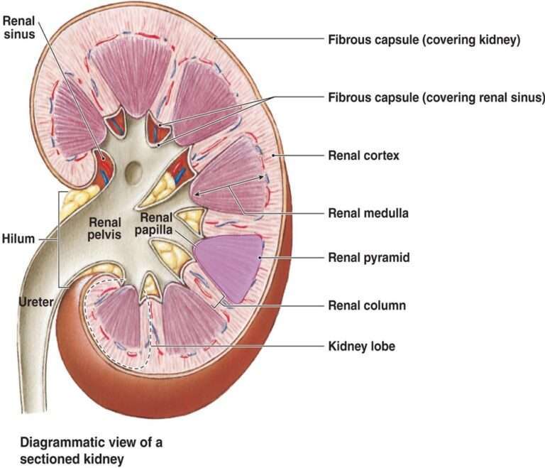 هر کلیه به سه بخش عمده تقسیم شده است: