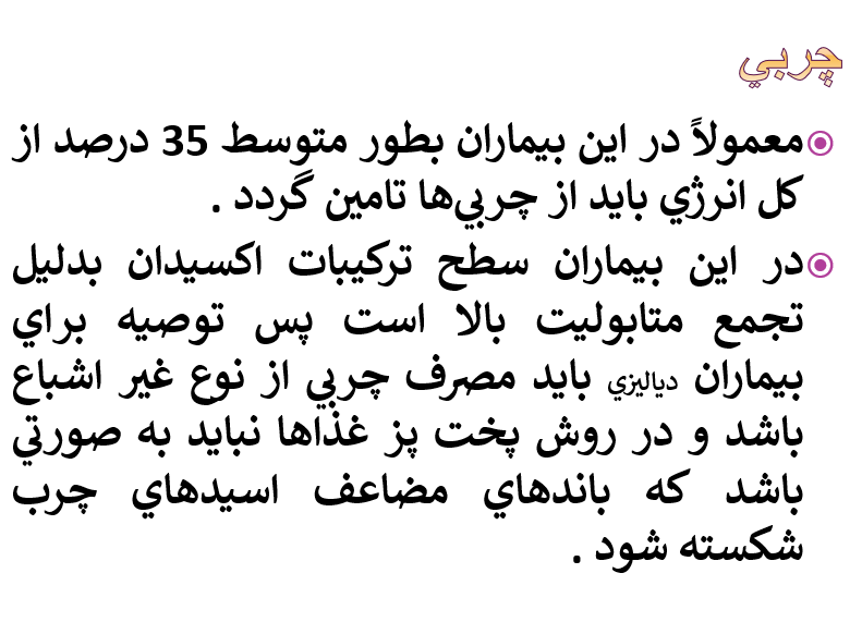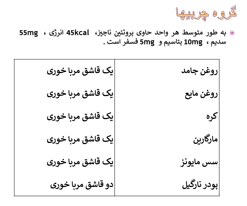 با توجه به اینکه ۱ گرم چربی ۹ کیلو کالری انرژی تولید میکند ۷۳۵/۹= ۸۱ گرم چربی(رژیم طبیعی)