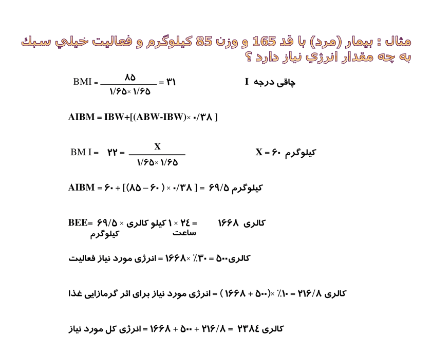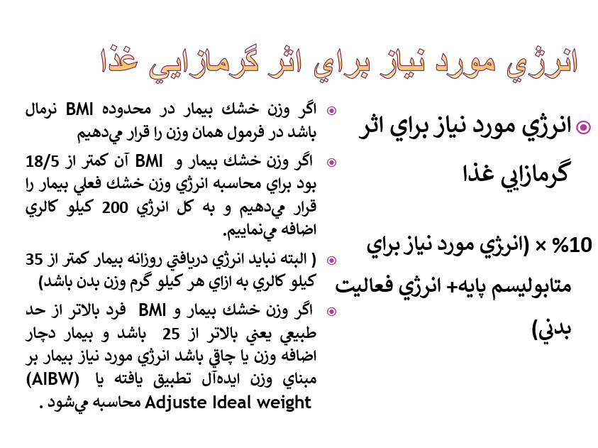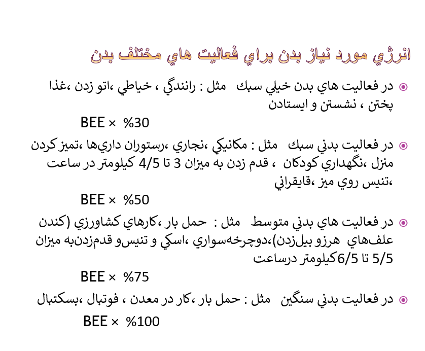 میزان مصرف انرژی روزانه برا افراد کمتر از ۶۰ سال: ۳۵ kcal/kg