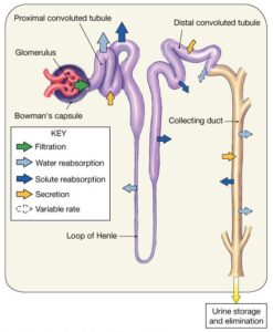 فرآیند دیالیز و صافی های مورد استفاده در آن بر اساس ساختار مویرگی و کلاف مانند گلومرول طراحی شدهاند .بازجذب آب و لوله های خمیده و جمع کننده تحت تاثیر ADH ، آلووسترون و ANP صورت می گیرد .بیش از ۶۰% باز جذب در لوله های خمیده ی نزدیک و حدود ۳۰درصد بازجذب در قوس هنله و ۷درصد در لوله خمیده دور و حدود ۲درصد در لوله های جمع کننده صورت می گیرد .نفرون های کورتکس نسبت به نفرون های مدولا ، پایه ی بلندتر و آستانه ی تحمل بالاتری دارند .